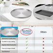 QUALITY BAKEWARE: The Alpine Cuisine baking round tray is made of high-quality pure aluminum material, with no extra coatings to flake off, no more plastic in your food, and healthy for baking, this is a great alternative to aluminum. The surface of pizza tray is resistant to staining, corrosion, and abrasion. Excellent substitute for wooden trays and unhealthy coating pans.