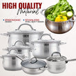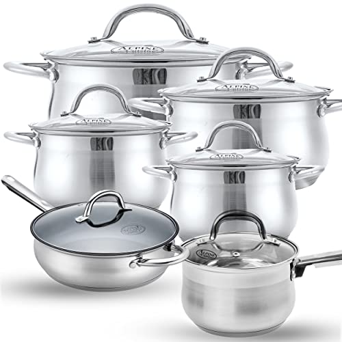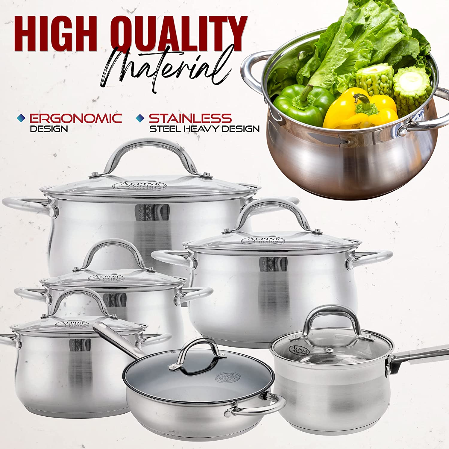 Alpine Cuisine Cookware Set 12-PC Belly Shape - Stainless Steel Cookware Sets with Lid, Stove Top Cookware Set for Healthy Cooking, Comfortable Handles, Dishwasher Safe & Easy to Clean