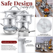STURDY & COMFORTABLE HANDLES: The stainless steel handles of the Cookware Set are designed for comfortable handling to stay cool on the cooktop and are fastened by a rivet, ensuring safety on cooking. The majority of home cooks and chefs use these stainless steel cookware sets in commercial kitchens. The heat-resistant ergonomic handles are easy to grip and stay cool on the stovetop.