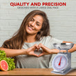 RECALIBRATABLE: The adjustment knob at the bottom of the food weighing scales can be used to recalibrate it. You will therefore consistently get precise readings whether you are parceling out bulk goods or weighing out ingredients for portion management. A stain-resistant, removable weighing bowl that's easy to clean and an oversized, easy-to-read dial make this scale kitchen the perfect addition to any home.